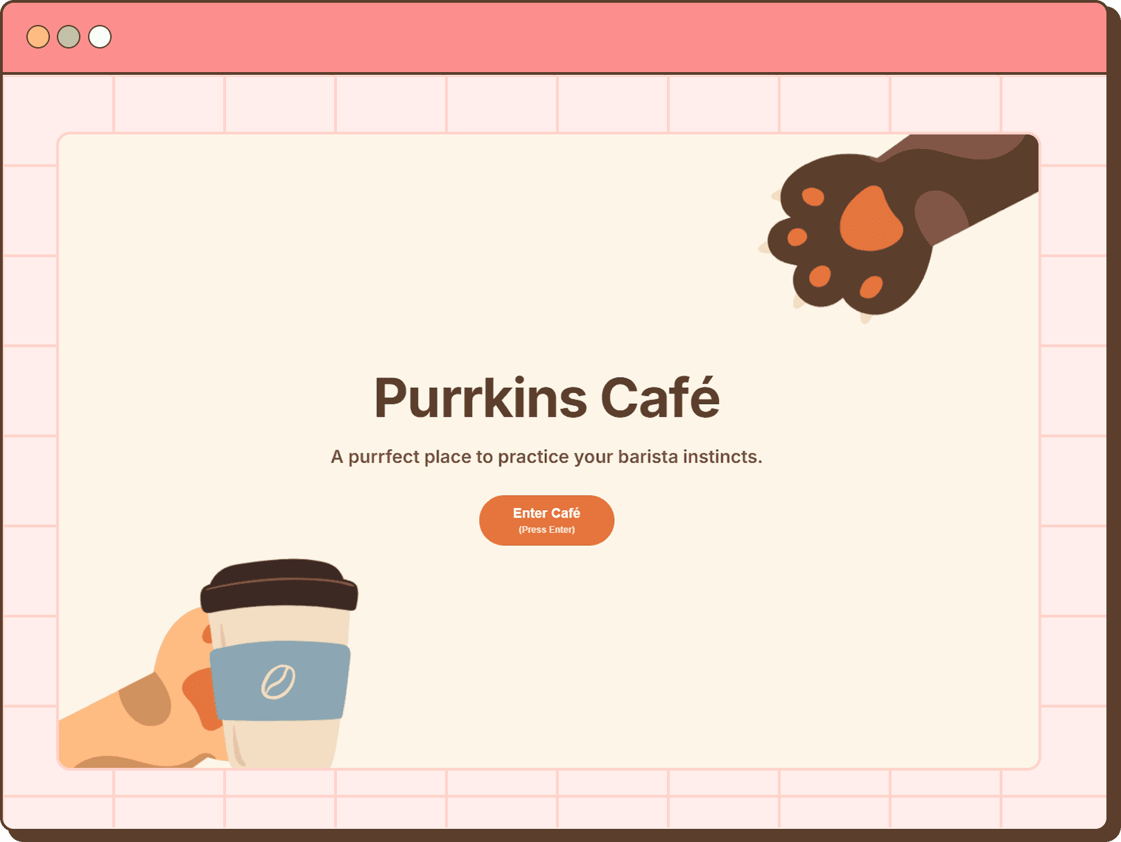 Interactive barista training featuring realistic scenarios, performance feedback, and a questionable amount of cat puns.