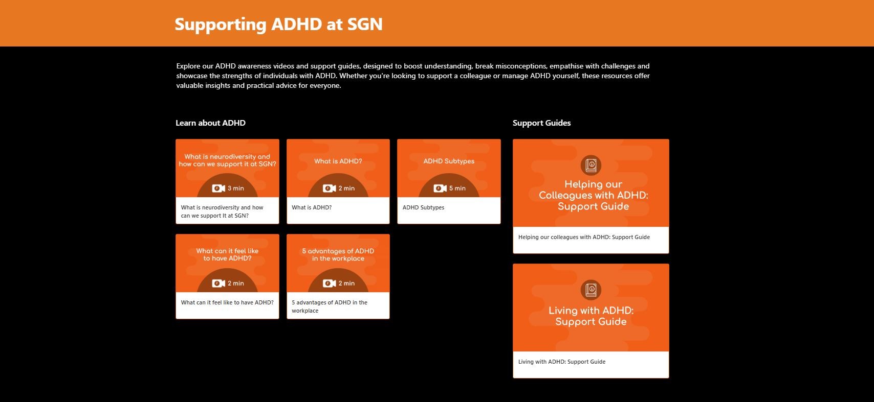 The neurodiversity project closed a gap in workplace support for neurodivergent colleagues. I ran focus groups to understand real experiences and created a set of learning resources that built awareness, reduced stigma and made simple adjustments easier to access. The content improved confidence, encouraged people to speak up and influenced how SGN approaches inclusion across the business.
